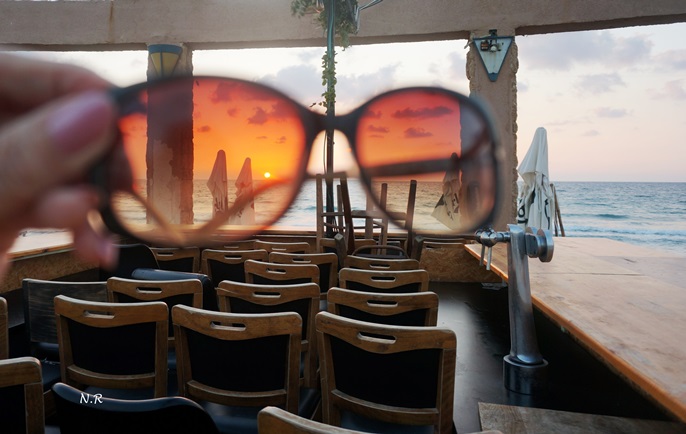 ממשיכה לצלם ביציאה לחוף הקרוב לפנות ערב עוטה מסכה