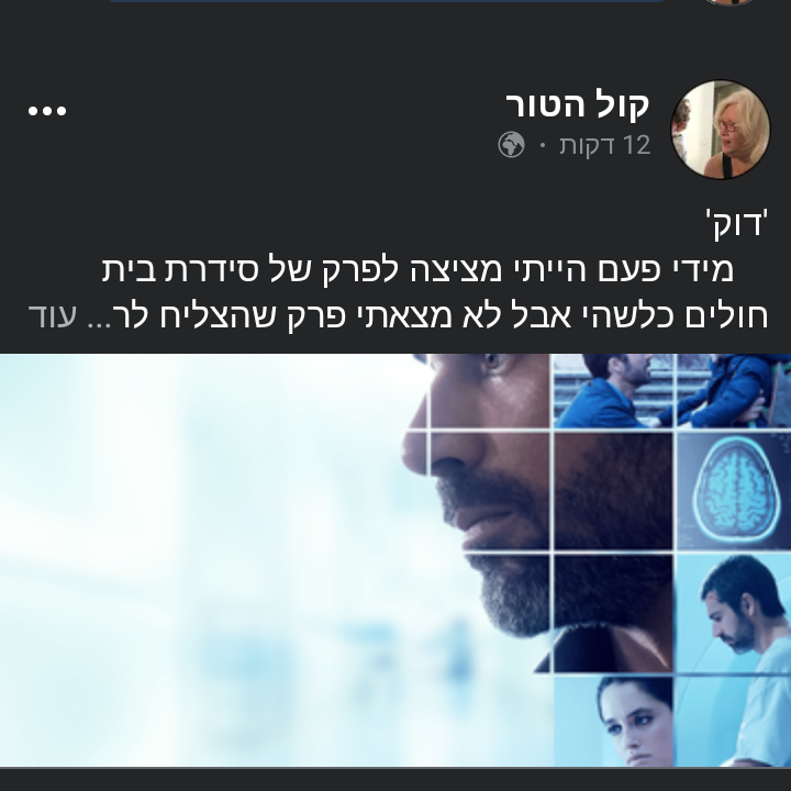 מידי פעם הייתי מציצה לפרק של סידרת בית חולים כלשהי אבל לא מצאתי פרק שהצליח לרתק אותי עד סופו. היה פרק אחד של ''האוס" שצפיתי בשלמותו אבל הסוף היה כל כך צפוי שלא השאיר לי טעם של עוד, אפילו שאת יו לורי אני מעריצה כסופר, הדמות שהוא מציג דל-ממדית מידי היא לטעמי